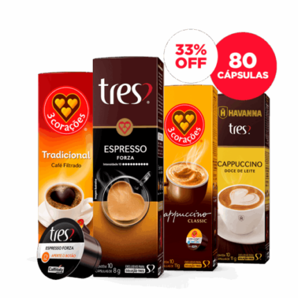 Kit Os Mais Vendidos 80 Cápsulas TRES 3 Corações