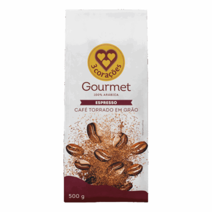 Café Torrado em Grãos Espresso Gourmet 3 Corações Pacote 500g