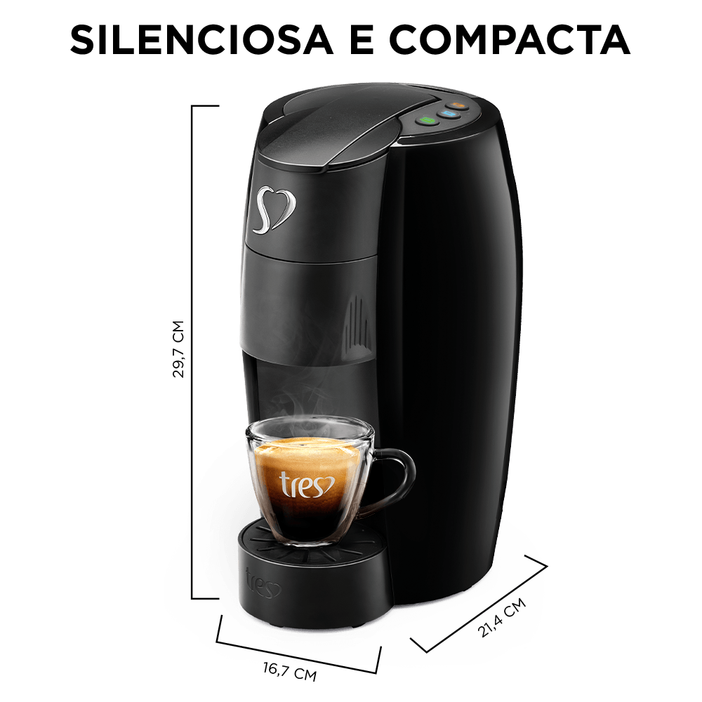 A Cafeteira de Espresso e Multibebidas Automática LOV TRES 3 Corações possui extração silenciosa que garante cafés espressos perfeitos, bebidas cremosas, cafés filtrados e chás ao simples toque de um botão. A LOV tem um compartimento externo para facilitar o descarte das cápsulas usadas e suporte para xícaras e copos long drink, que garante a praticidade na hora de preparar as suas bebidas preferidas na quantidade ideal.