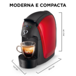 Com um design moderno e compacto é uma máquina silenciosa que prepara espressos perfeitos, cappuccinos, bebidas cremosas, cafés filtrados e chás naturais ao simples toque de um botão.