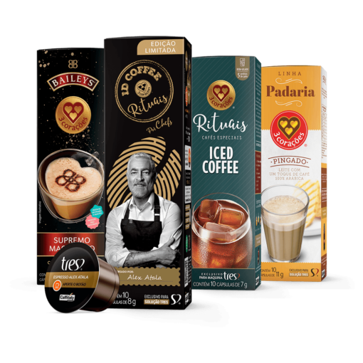 O Kit Últimos Lançamentos é um combo perfeito para quem ama saborear as novidades de cafés, bebidas cremosas chás. Escolhemos as cápsulas TRES 3 Corações mais recentes para você degustar. Aproveite essa oferta exclusiva Mercafé! Contém 70 CÁPSULAS (7 caixas com 10 cápsulas cada) dos seguintes sabores: 1 Cartucho com 10 cápsulas de Pingado 3 Corações 1 Cartucho com 10 cápsulas de Cappuccino Doce de Leite Havanna 1 Cartucho com 10 cápsulas Baileys Supremo Macchiato 1 Cartucho com 10 cápsulas de Café Espresso ID Coffee Alex Atala 1 Cartucho com 10 cápsulas Iced Coffee 1 Cartucho com 10 cápsulas de Chá Hibisco e Maçã 1 Cartucho com 10 cápsulas de Chá de Laranja Mediterrânea com Hibisco *Para uso exclusivo no sistema TRES®