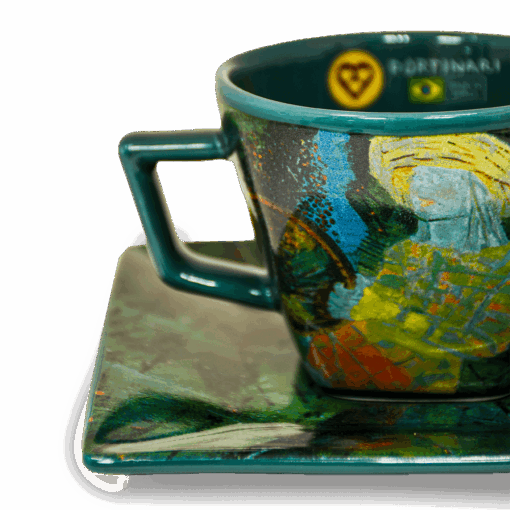 Uma xícara de porcelana única, estampada com uma das mais apreciadas e conhecidas obras de Cândido Portinari, ‘’Peneirando Café’’ – criada em 1957, agora desenvolvida para os amantes da arte e do café 3 Corações. Produzida em porcelana fina, com um formato moderno e inusitado, com quatro lados e base larga. Ótima para apreciar e servir com: – Linha de Cafés Torrado e Moído Portinari (Notas Frutadas, Notas Florais, Notas Trufadas) Gourmet 3 Corações. – Linha de Cápsulas de Café Espresso Portinari TRES 3 Corações (Notas Frutadas, Notas Trufadas). – Toda a linha de cafés. Aprecie a arte de fazer café!